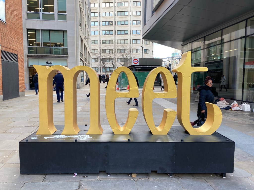 Day 1 involved a Doctor Who walking tour as my best friend is a bona fide Doctor Who nerd and it was her birthday trip. As we traversed the City we ran into these large words, the first being “what.” So, I decided to name each section of this post with the first word I found each day. Note: It took 2 days before I figured out what the entire phrase was – I thought the words were intriguing but didn’t bother to read the placard on them until Day 2.