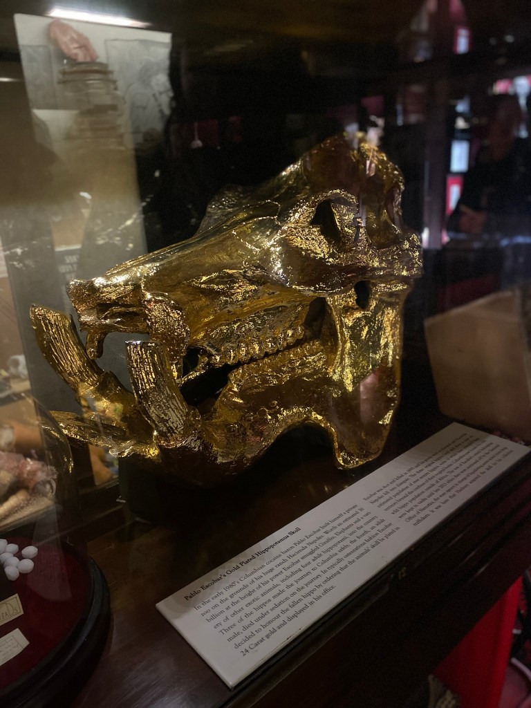 Following our Sherlock Holmes tour we traveled to Hackney, London to check out the Last Tuesday Society and Museum of Curiosities. In addition, to sampling the absinthe cocktail selection, we got to see the Pablo Escobar’s gold plated hippo skull amongst a selection of other curiosities.